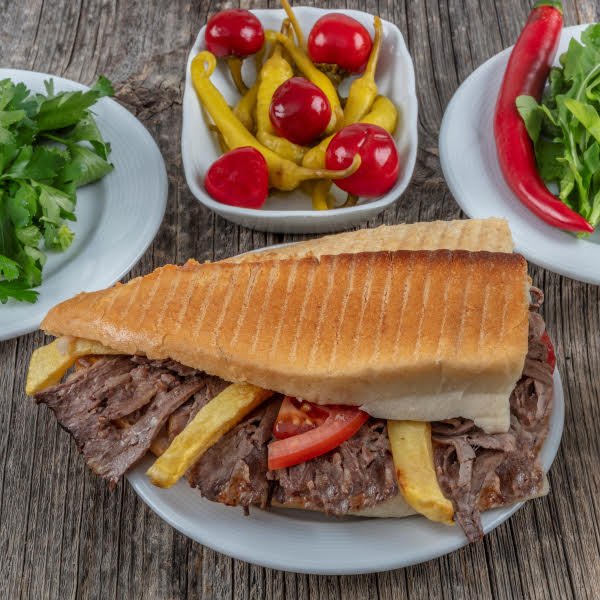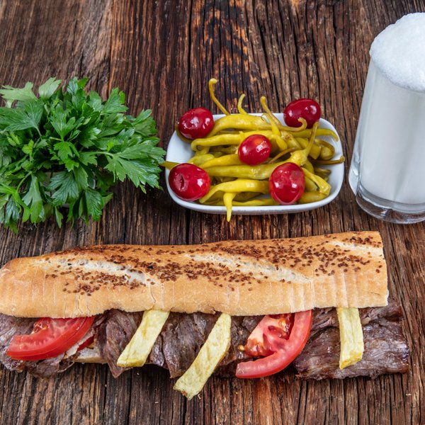 Meşe Odunu ile Köz ateşinde pişen 120 gr yaprak döner eti içerir. Beyaz pirinç pilavı ile servis edilir Yanında sızma zeytinyağlı salata ile Biber Turşusu İkram edilir.