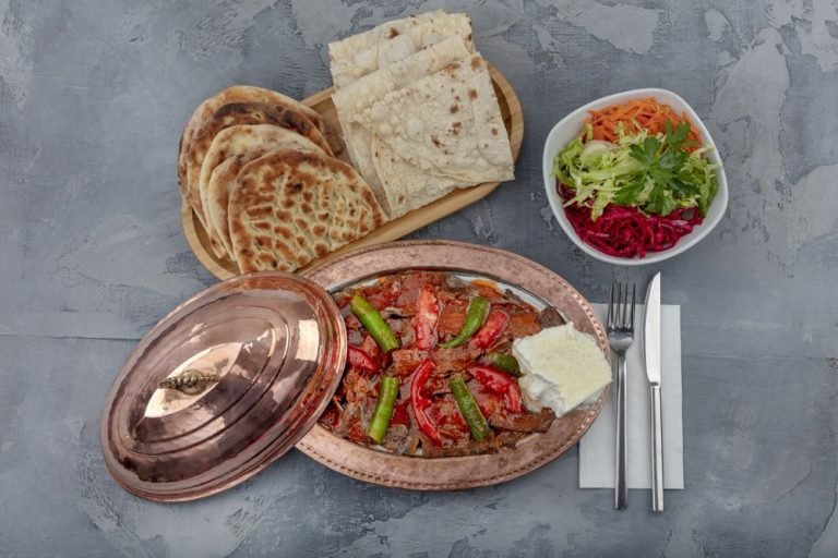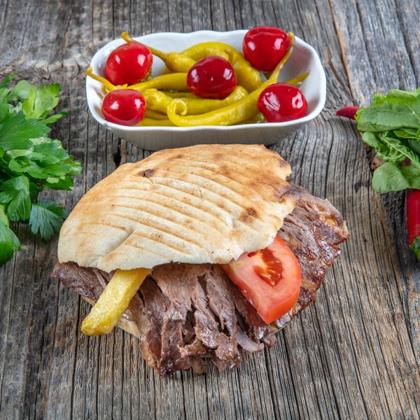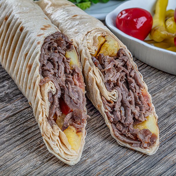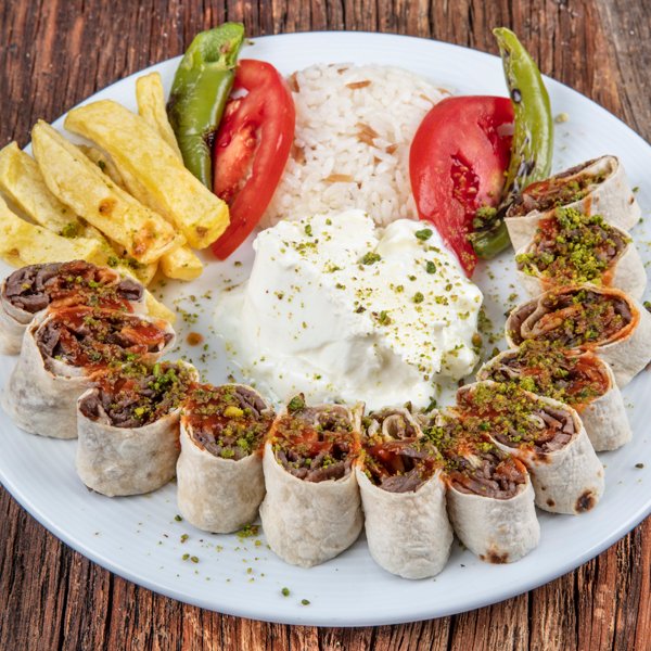 Meşe Odunu ile Köz ateşinde pişen 120 gr yaprak döner eti içerir. Özel hazırlanan sosu ile tatlandırılır. Pide ile servis edilir. Bakır kapta sunumu yapılır Yanında sızma zeytinyağlı salata ile Biber Turşusu İkram edilir.